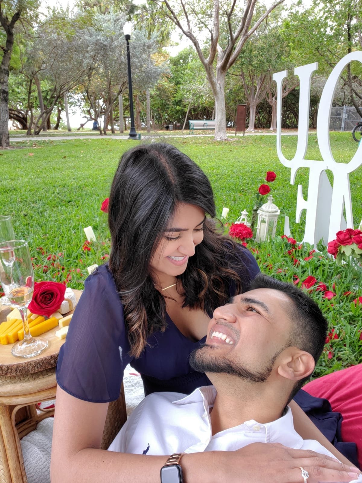 On 4 – 3 – 21, the universe gave us a countdown and we said Blast Off! Hari took Alyssa to a gorgeous South Beach Miami Park where he had a romantic picnic set up and got on one knee.